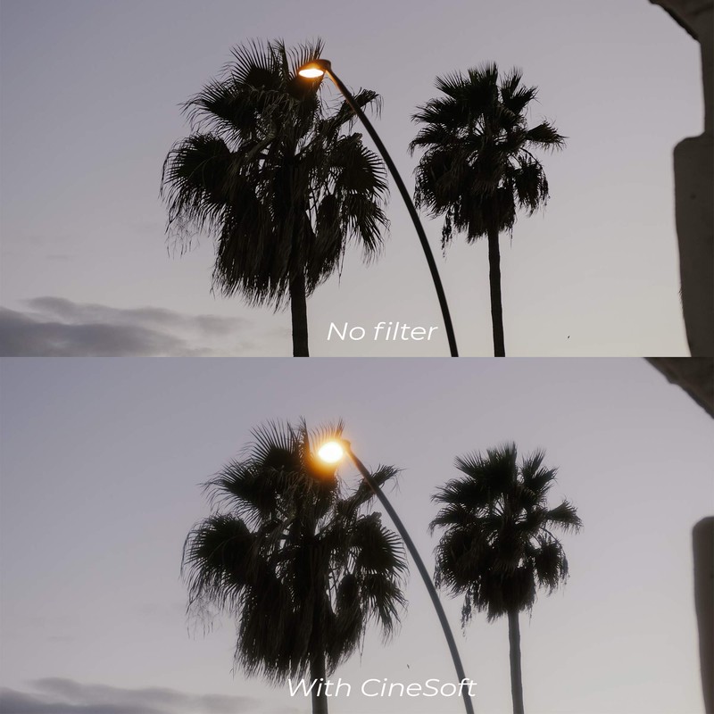 - Light diffusion: Softens the image highlights and makes them bloom. Softens and blooms a variety of light sources, from very dark to bright direct sunlight.