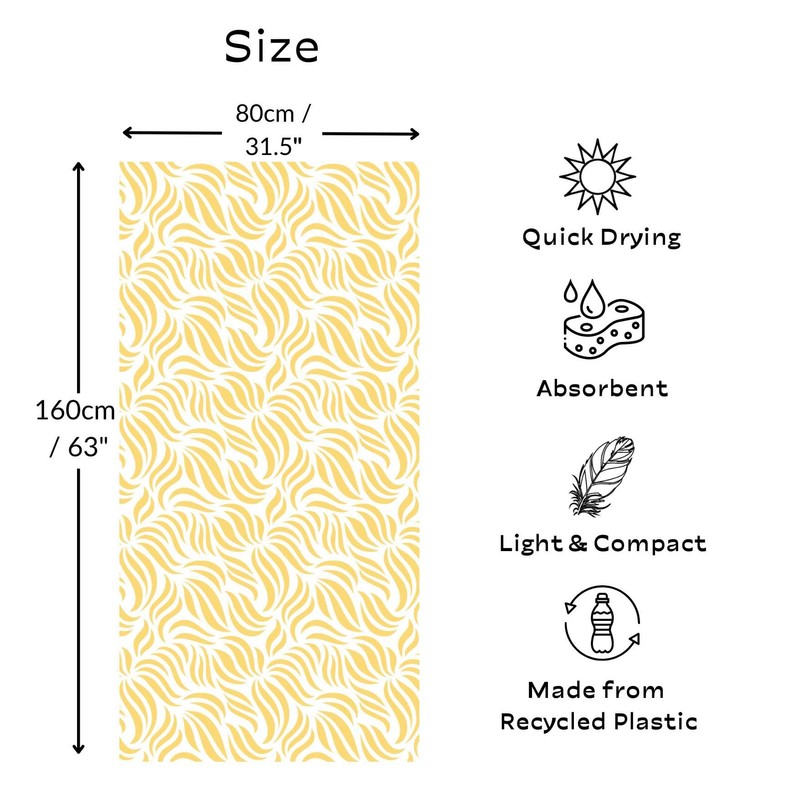 Tide Towels - Microfiber Beach Towels, Made Using Plastic Waste, Quick Drying, Odourless. Lightweight & Compact. Includes Bag. Perfect for Travel, Swimming, Yoga, Camping & Gym. (Sunflower Yellow)
