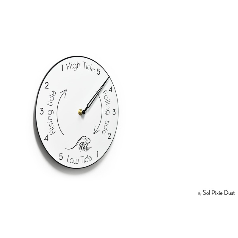 Tide Wall Clock - White Round Clock - Sea Tide Tracker - Unique Wall Decor - Ocean Waves - East Coast Beach House - Optional RGB LED 5V
