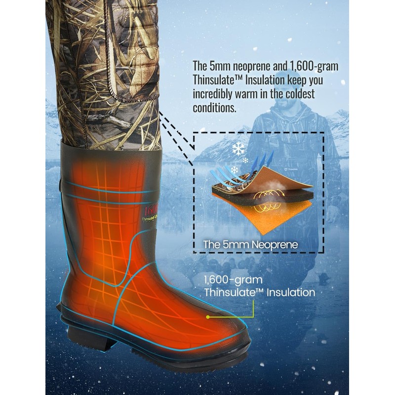 TIDEWE Hunting Wader, 5mm Neoprene Chest Waders with 1400 Gram Insulation Rubber Boots, Waterproof and Seam Sealed Bootfoot Chest Wader for Fishing and Hunting (Next Camo Evos Size 8)