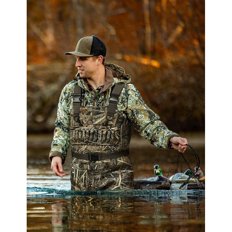 - 【Wear-resistant & Comfortable】Super tough cross-hatch facing on the exterior makes the hunting wader extra solid. Built-in rubber boot is comfortable and can be worn with or without socks. Our rugged boot tread pattern provides you with better balance and traction on wet and muddy surfaces.