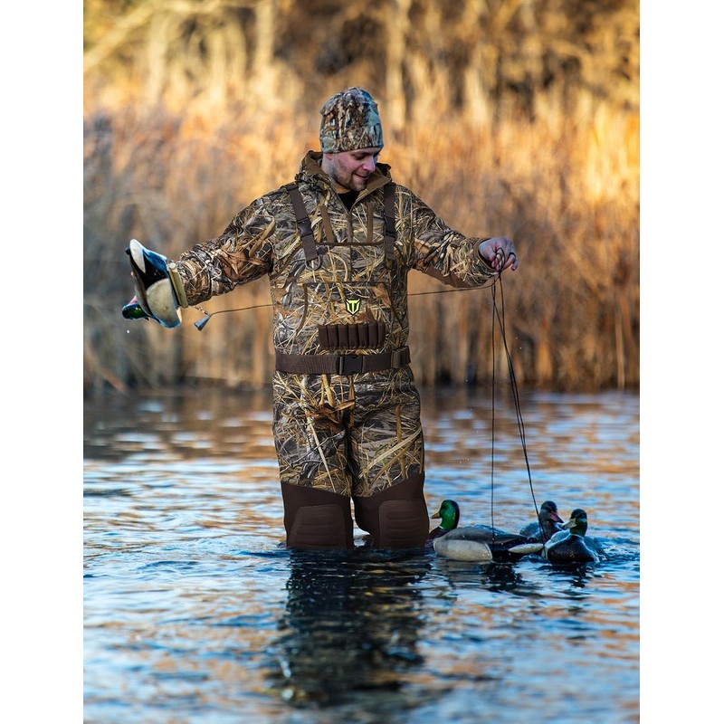 - 100% Waterproof: Crafted from high-quality neoprene with bonded blind stitching at the seams, heat-sealed strips, and a polyurethane coating, these waders for men ensure you stay dry whether you're hunting or fishing in water or woods