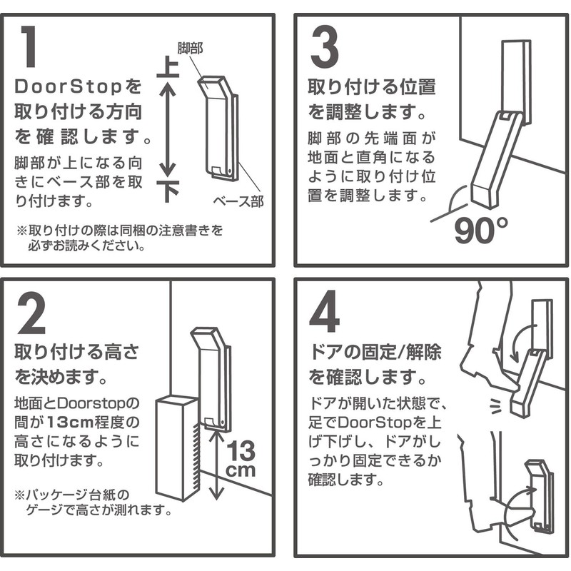 - Use the included double-sided tape (white) for fixing on doors other than steel