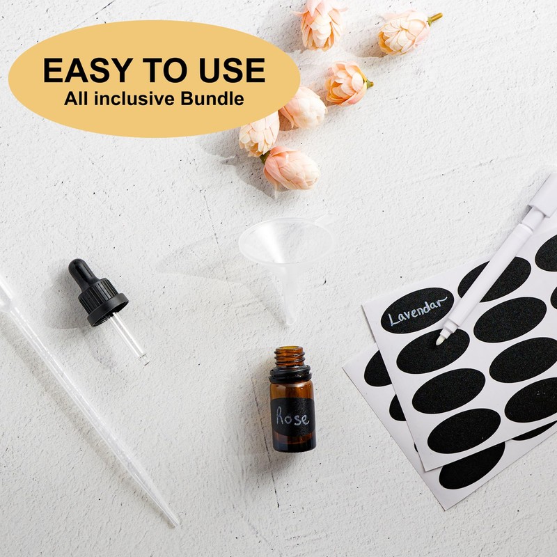This comprehensive set comes with several practical accessories to enhance your experience. The included funnel allows for easy, mess-free filling, ensuring that every drop of your liquid is neatly contained. The labels help you organize and identify your bottles, making it simple to keep track of your various essential oils, perfumes, or other liquid mixtures. A pipette is provided for precise measurements, perfect for tasks that require accuracy, and a microfiber cloth is included to keep your bottles clean and free of smudges.