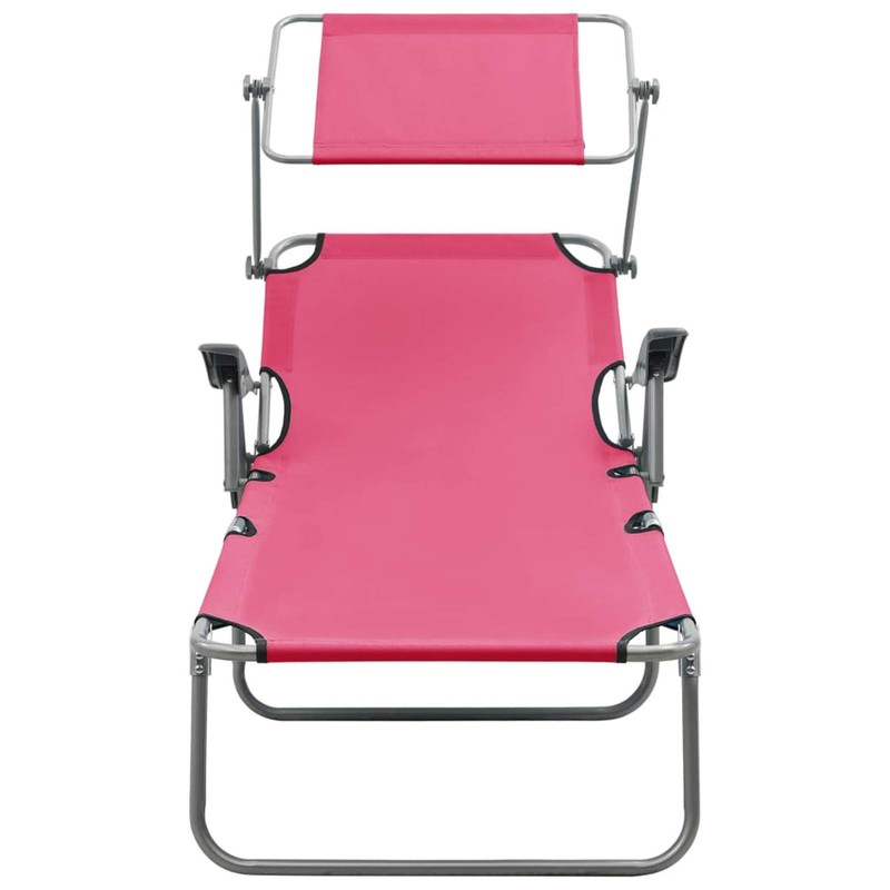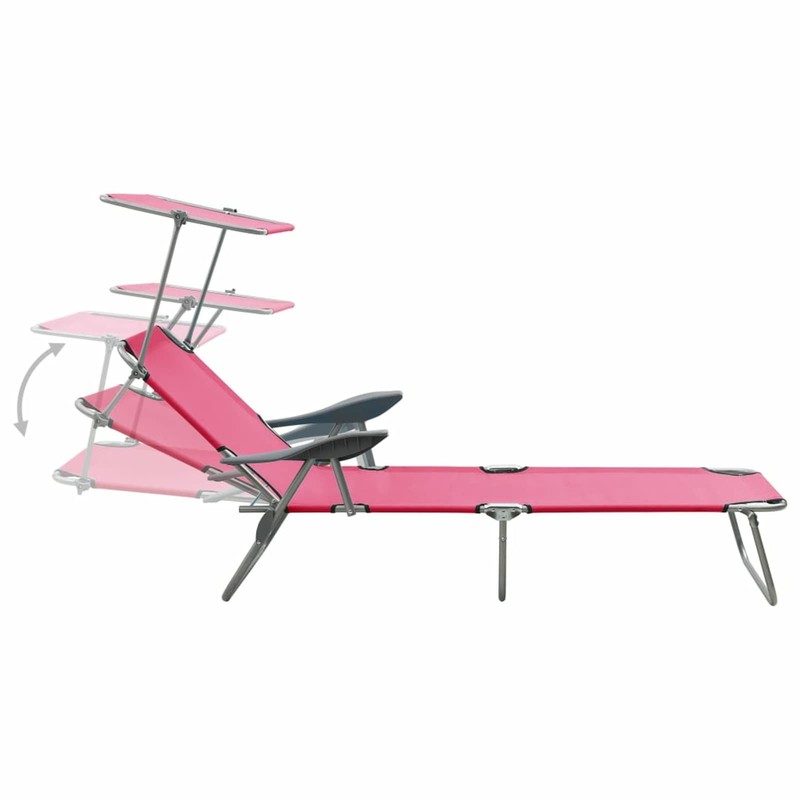 Tidyard Folding Sun Lounger with Canopy, Backrest Adjustable Chaise Lounge Chair, Steel Frame Beach Day Bed Pink for Patio Pool Garden Terrace Deck Outdoor 28.1 x 74 x 10.6 in