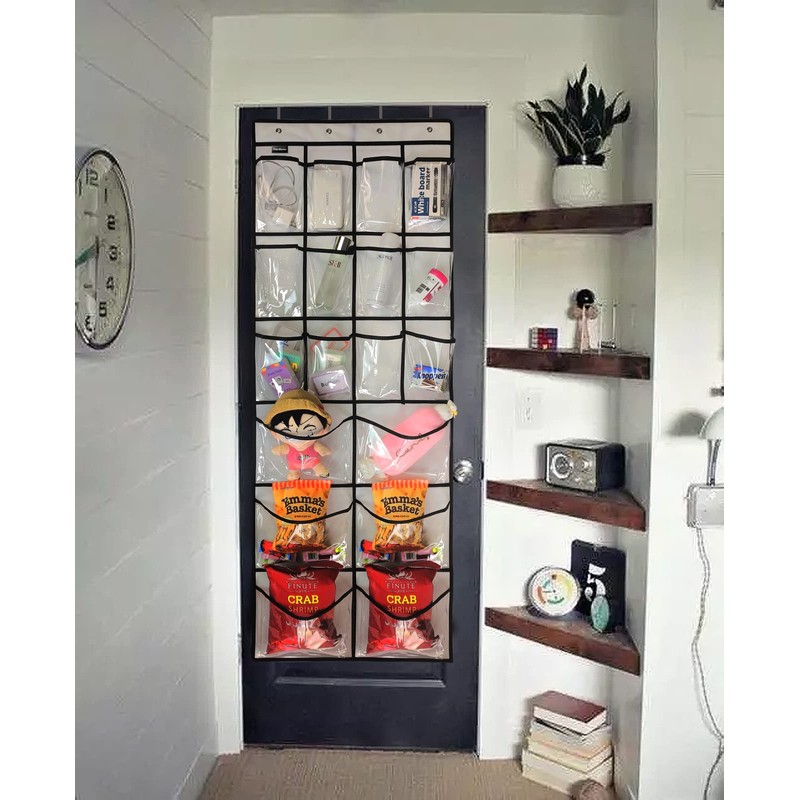 • 【1 Pack Over the Door Organizer】with 6 roomy and large Transparent pockets+12 routine pockets, hold more than 12 pairs shoes to free up floor/shelf space.
