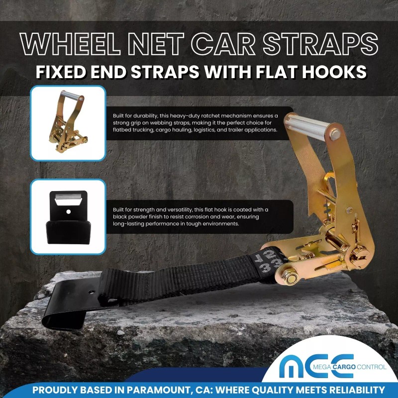 Tie 4 Safe USA 4 Pack 2" x 10' Side Mount Wheel Net Ratchet Tie Down w/ Lasso Strap BLACK