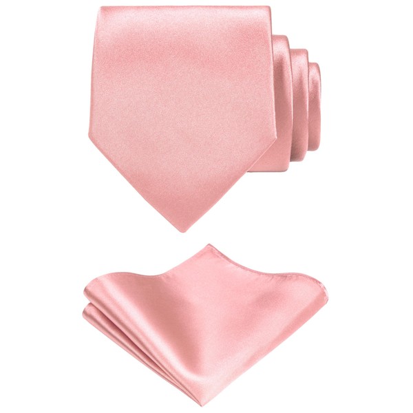 TIE G Solid Satin Color Formal Necktie and Pocket Square Sets in Gift Box (Dusty Rosepink)