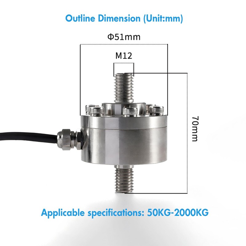 Tie Rod Load Cell Sensor,Tension Compression Force Weight Pressure for Scale Sensor,High Precision ±0.2% Outer Diameter 51mm Height 71mm with 2m Cable Range (0-50KG)