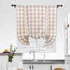 Tie Up Curtain for Windows 45 inches Long Buffalo Check Adjustable Tie Up Shades Plaid Gingham Rod Pocket for Kitchen Windows 1 Panel, Beige/White