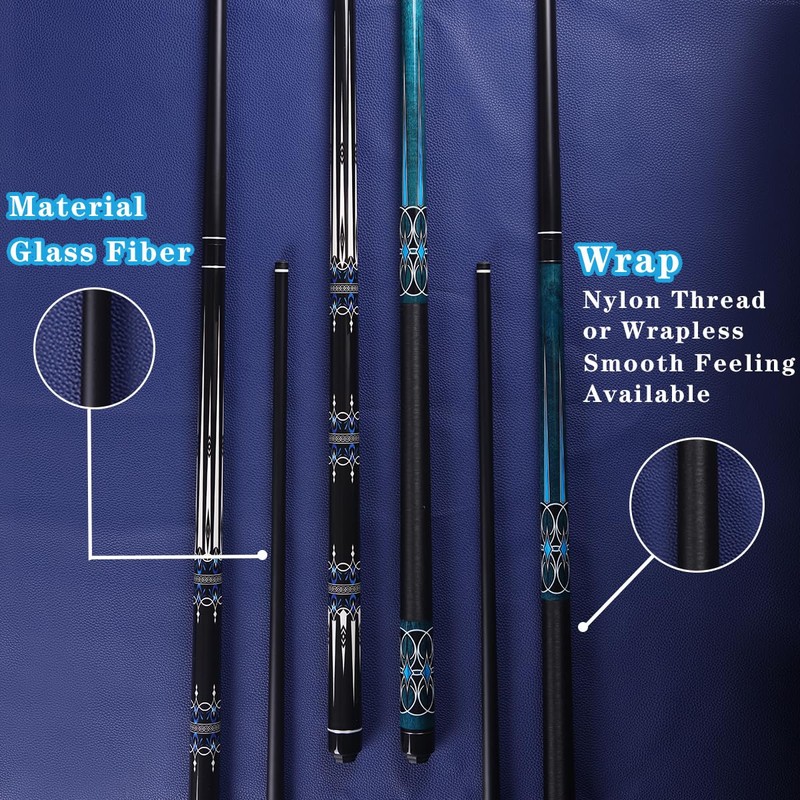 - 【Unique Pattern Design】This pool cue has a classic and simple design, and is black in color. The front half is a high-tech glass fiber shaft, and the butt half uses a unique patterns design. Made of high-strength glass fiber, has extremely high tensile and compressive strength, and has good toughness and durability.