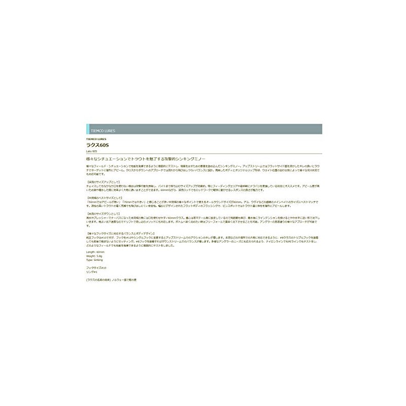 TIEMCO Raku 60S #010 Black Yamame Silver Park 2.4 inches (60 mm)