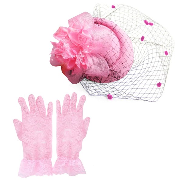 Tierneys Talk Hat, Cocktail Hat, Headdress, Women's Hat, Tulle Included, Gloves, Lace Gloves, Ceremonial Occasions, Parties, After-parties, European Style, Pink