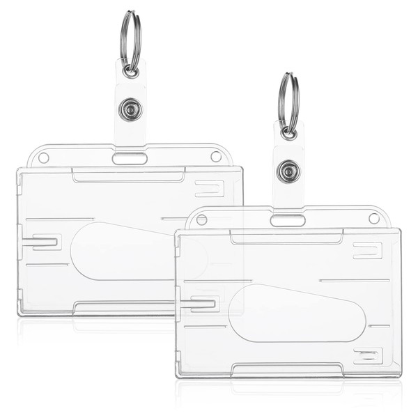 TIESOME TIESOME Ausweishalter mit Schlüsselanhänger, 2er Pack strapazierfähiger Ausweishalter Schlüsselanhänger Hartplastik durchsichtiger Kartenschutz Daumenschlitz Kartenetui Schule Bürobedarf (horizontal)