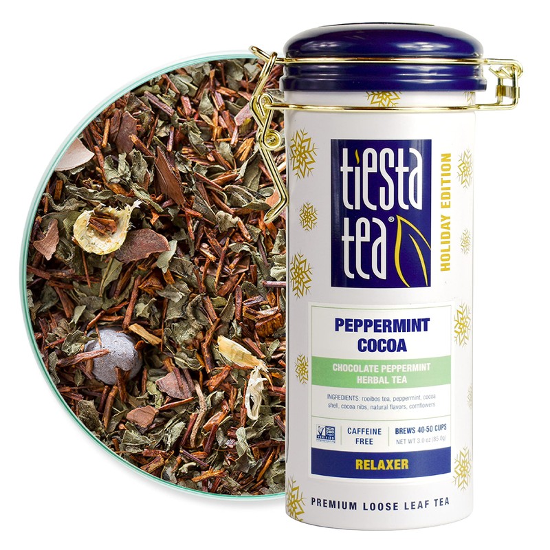 Tiesta Tea - Cozy Peppermint Cocoa, Chocolate Peppermint Herbal Tea, Loose Leaf, Up to 50 Cups, Make Hot or Iced, Non-Caffeinated, 3 Ounce Refillable Tin