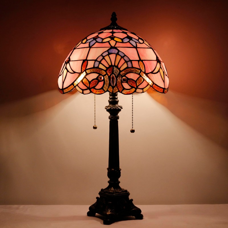 Tiffany Table Lamp Pink Stained Glass Desk Lamp 12X12X21 Inches Baroque Style Reading Light