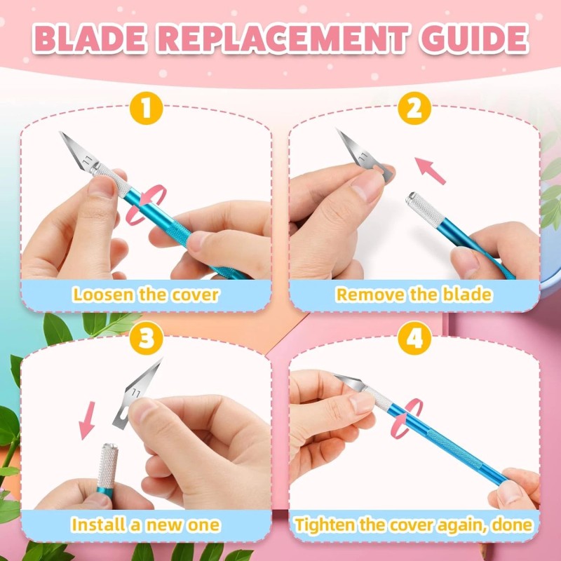 - Designed for All Users: The exacto knife kit includes five meticulously designed craft knife along with fifty high-performance carbon steel blades, each component is tailored to facilitate precise and intricate work across a variety of applications, ensuring versatility and efficiency. This exacto knife set makes it a fundamental tool for detailed artistic projects, precision crafting, and delicate model assembly, catering to the needs of both professionals and hobbyists.