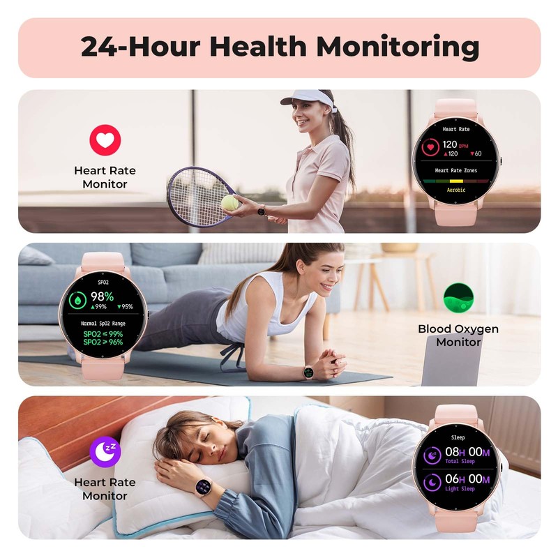 - 【Comprehensive Health Assistant】With built-in sensors and intelligent algorithms, the health watch can monitor your heart rate and blood oxygen changes in real time, and provide trends and warnings of heart rate data. This helps you understand your heart health and breathing and take appropriate action when needed. It also tracks your sleep quality, analyzing the duration of your sleep, deep sleep, light sleep, and awake time, providing you with comprehensive sleep reports to help you develop healthy sleep habits.