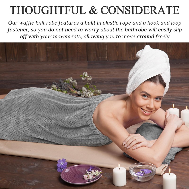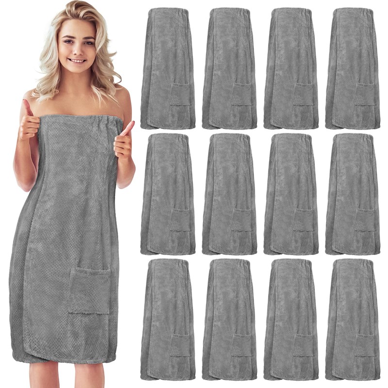 Tigeen 12 Pcs Spa Robe for Women Waffle Spa Wraps with Pocket Adjustable Closure Lightweight Towel Wraps for Bath Shower(Gray, Pocket)