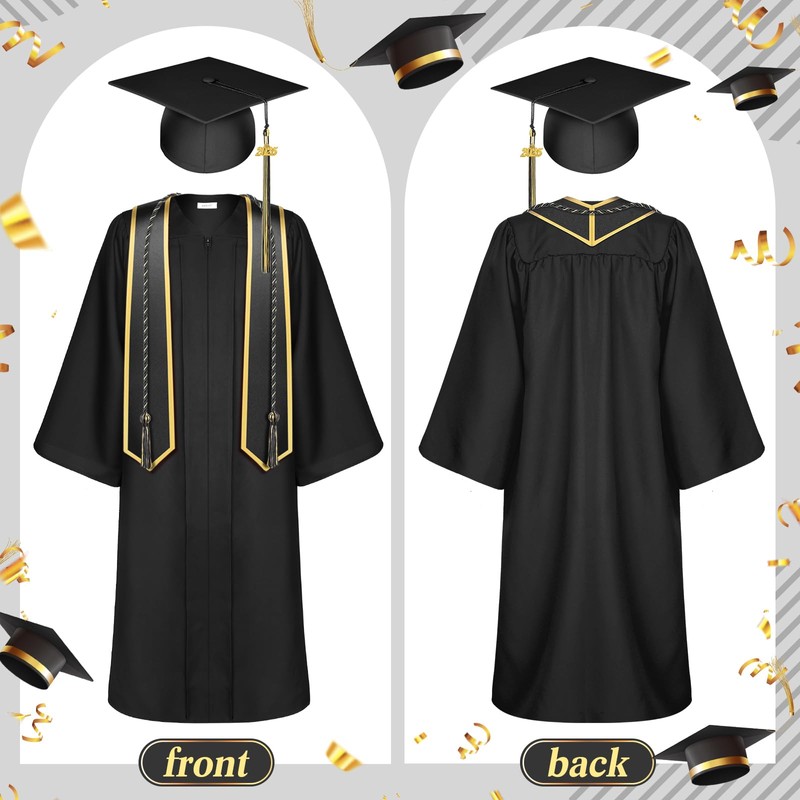 - Graduation Costume Set: including 1 graduation gown, 1 top cap, 1 tassel, 1 2025 charm, 1 2026 Charm, 1 cord, 1 sash, complete graduation theme of clothing combination, to give you an unforgettable graduation ceremony