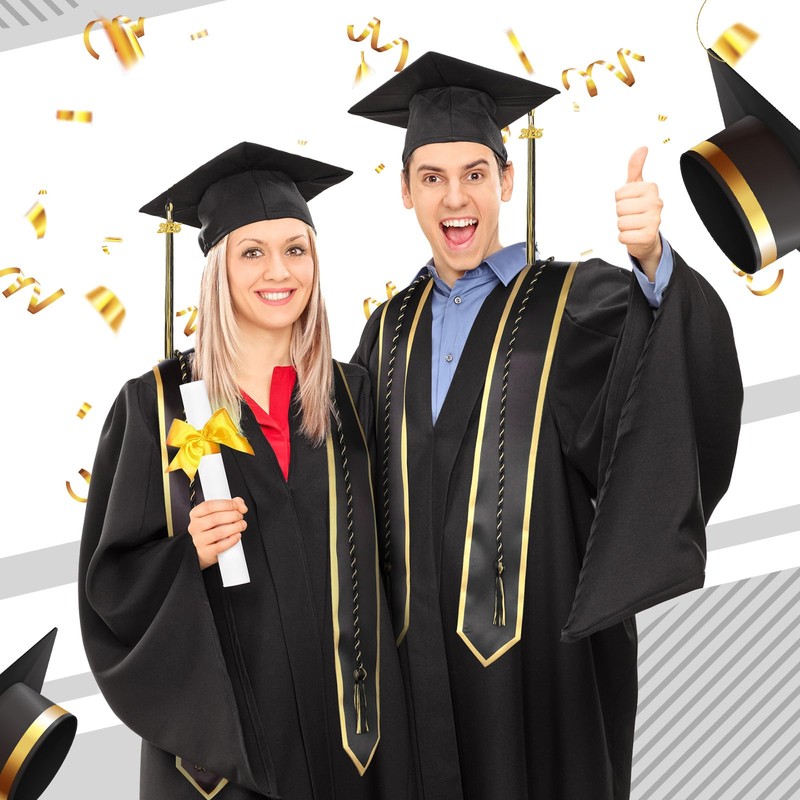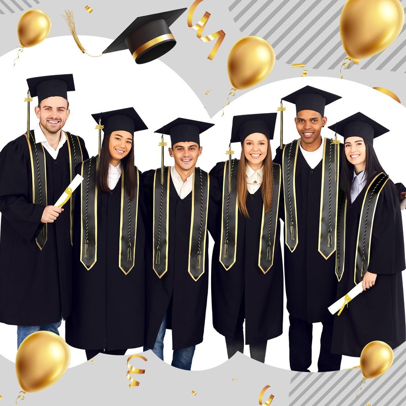 - DIY Graduation Shawl: shiny satin graduation straps, front ends with pointed angles and fully lined, 33.3 inches per side, 72 inches in total, you can DIY on top, easily print badges, clubs logos, school letters, wishes, names, grades and symbols