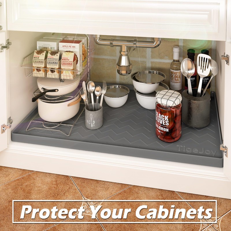 - MULTI-PURPOSE MAT: This mat is not just for under the sink, it can also be used as a pet feeding mat, door entry boot tray, crafting mat or even a potholder. TigeJoy mat provides excellent protection.