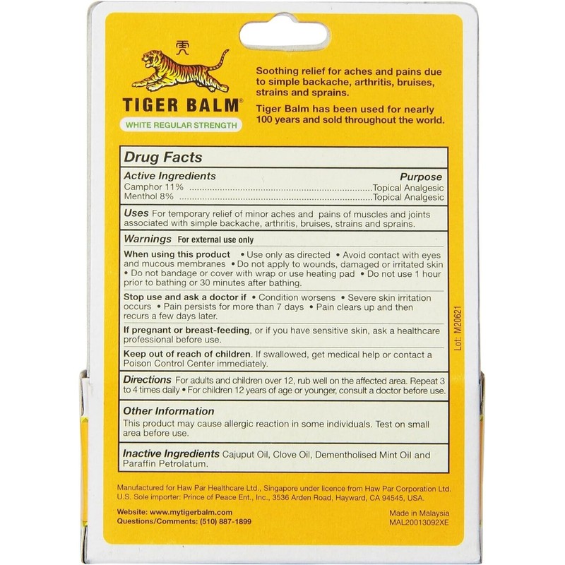 Tiger Balm White Regular Strength 0.63 Oz (Pack of 3) - Exp: 6-2026