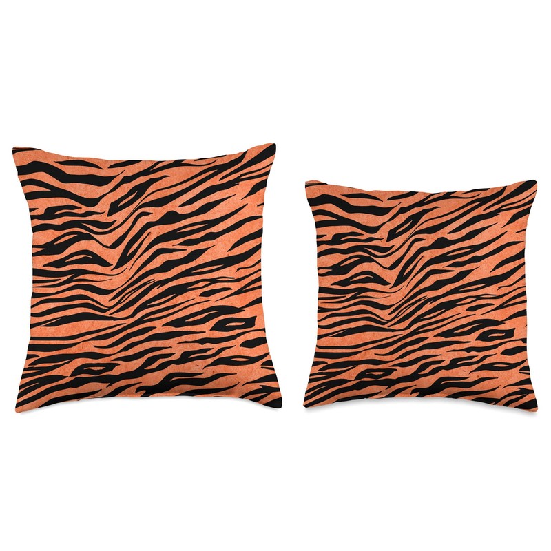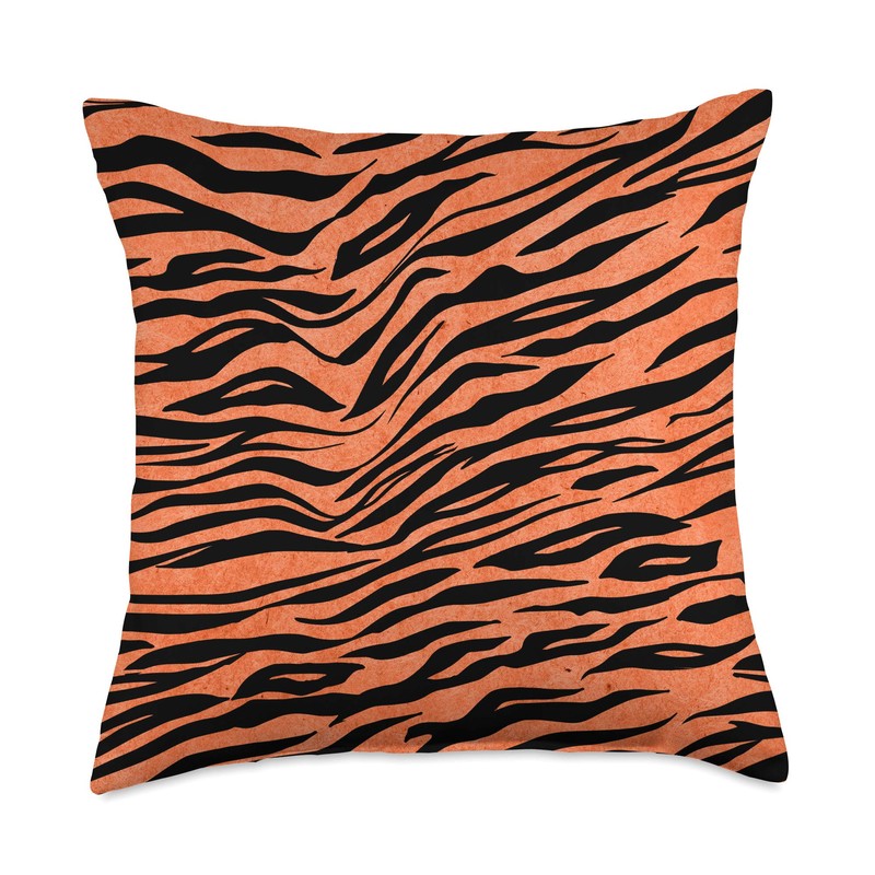 Tiger Print Exotic Bold Animal Pattern Black and Orange Throw Pillow