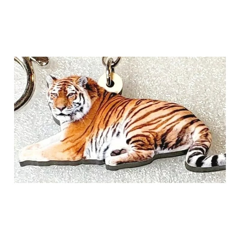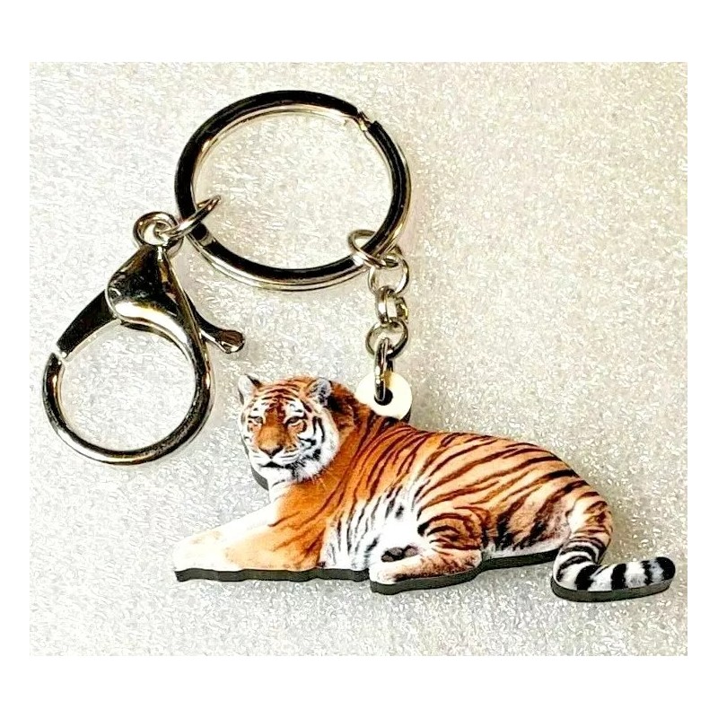 Tiger Relaxing Flat Acrylic Key Ring Keychain Jewelry