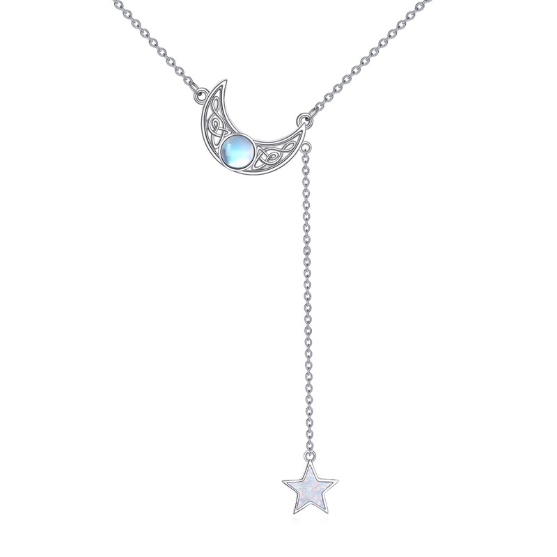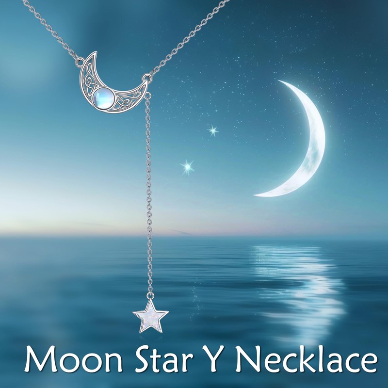TIGER RIDER Celtic Moon and Star 925 Sterling Silver Y Necklace Moonstone Jewelry Gifts for Women Christmas Birthday