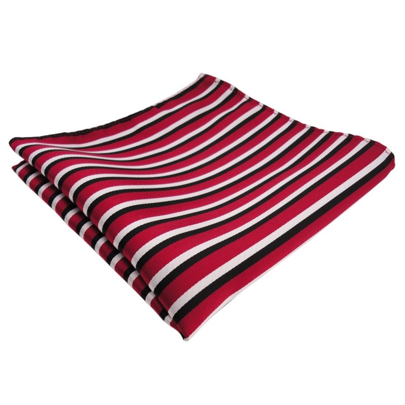 TigerTie Designer Pocket Square in Striped Pattern - Pocket Square Size 30 x 30 cm, Red, white, black