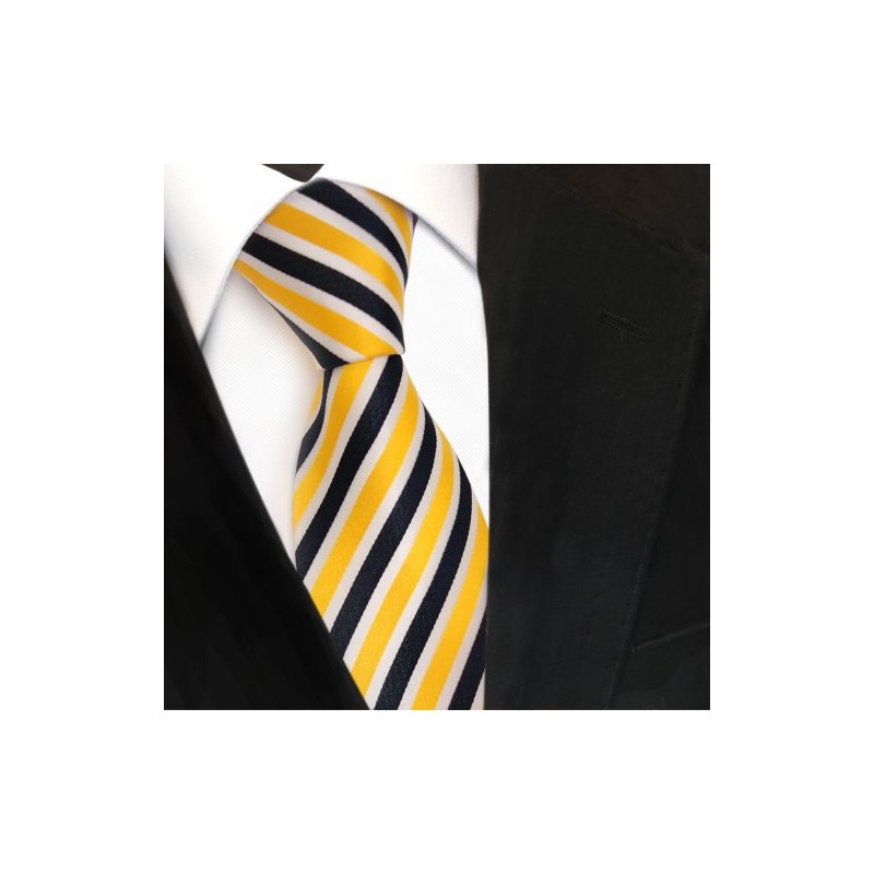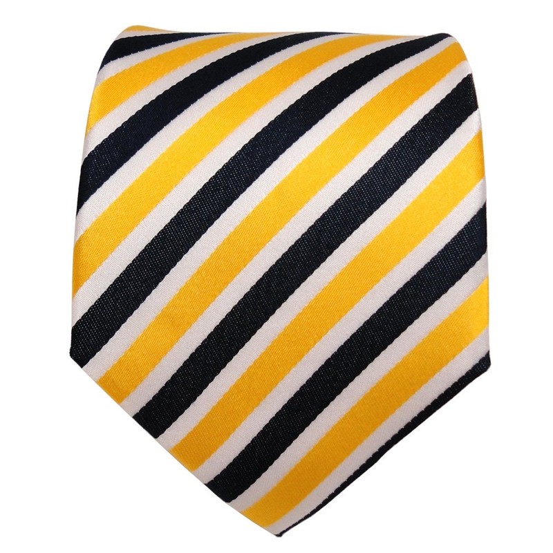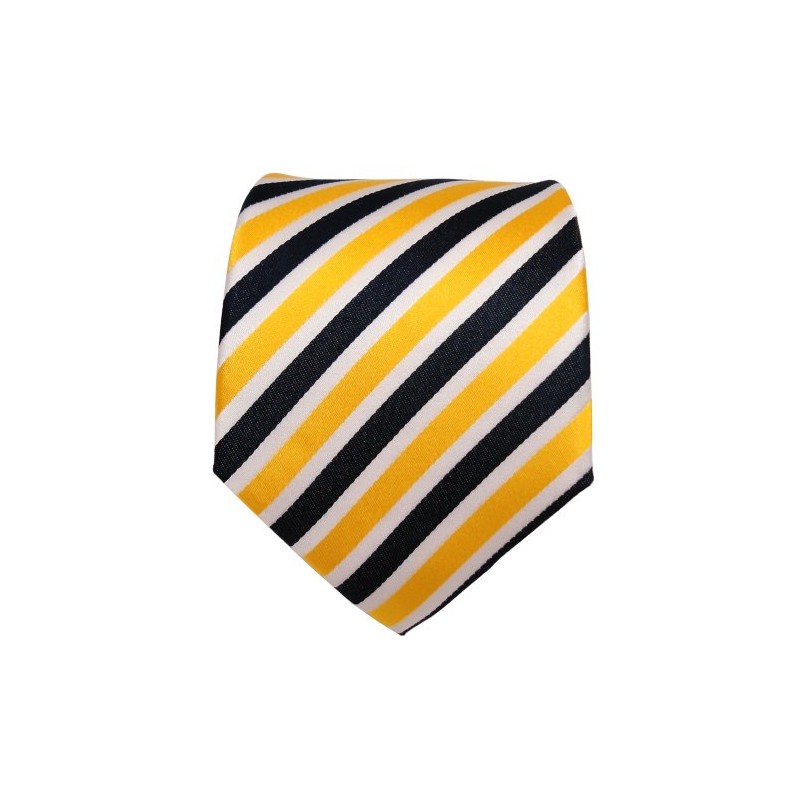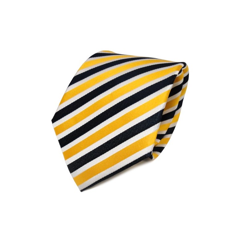TigerTie Designer Silk Tie in Striped - 8 cm Tie Width, Yellow Golden Yellow Royal White