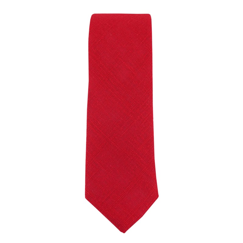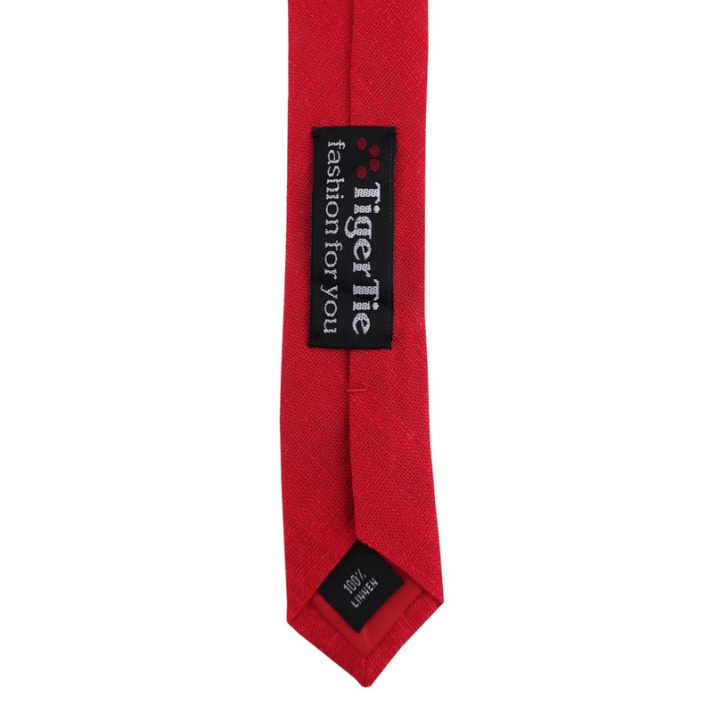 TigerTie - Slim designer tie in plain colour, 100% linen, tie width 5.5 cm, red