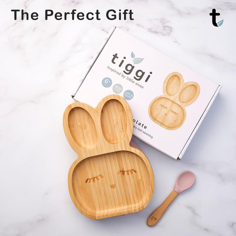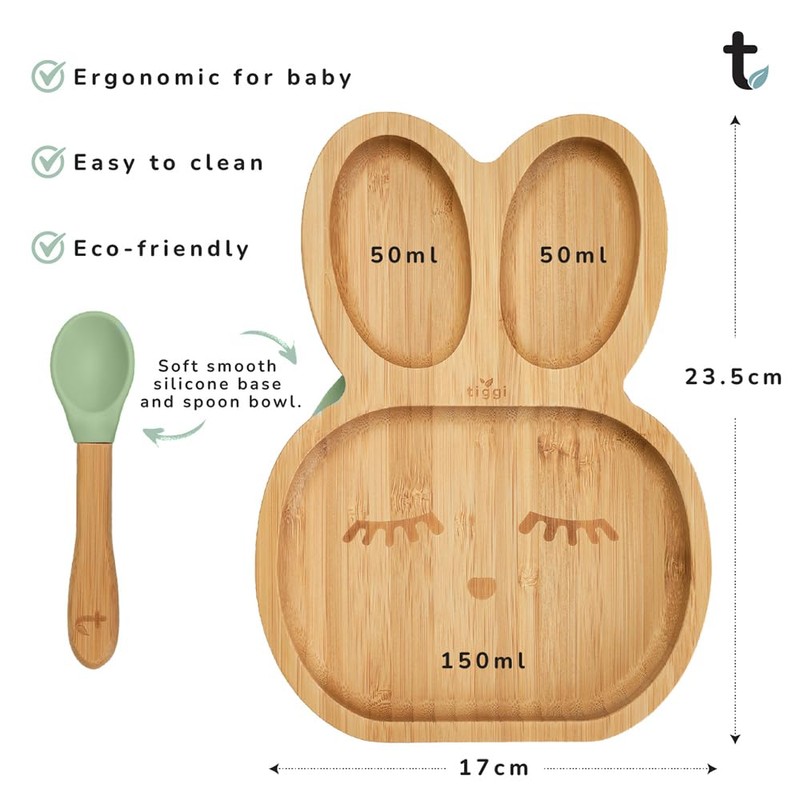 Tiggi Bamboo Baby Plate with Strong Suction Ideal Toddler Plates and Suction Plates for Babies Weaning | Bamboo Plates Baby Weaning Set from 6+ Months | Suction Plate Baby (Rabbit, Soft Mint)