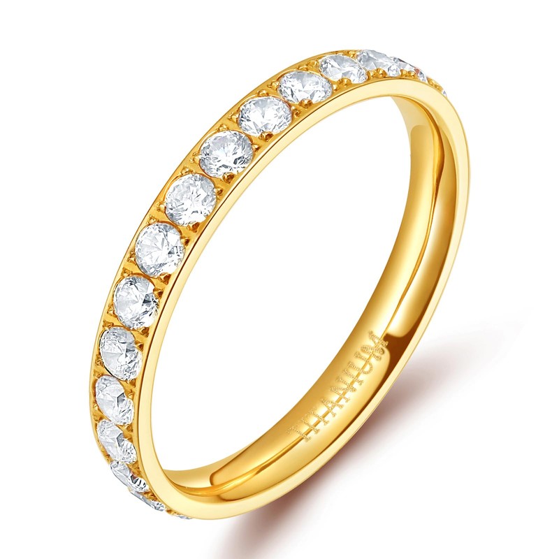 TIGRADE 3mm Women Titanium Engagement Ring Cubic Zirconia Eternity Wedding Band Size 3-13.5, Gold, Size 10.5