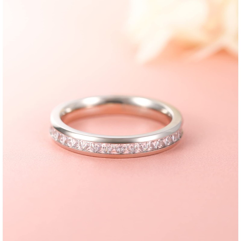 TIGRADE 4mm Women Titanium Engagement Ring Cubic Zirconia Eternity Wedding Band Size 3 to 13.5 (4MM-Square CZ, 5.5)