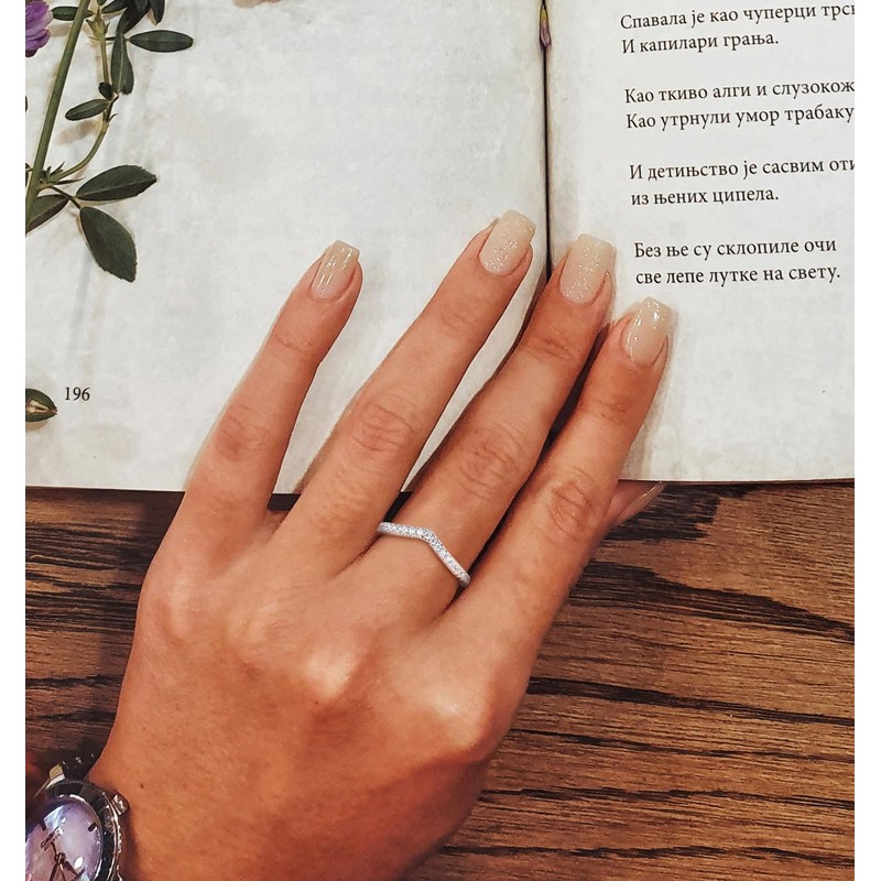 - Premium Quality: This ring features shimmering scalloped cubic zirconia stones that form a subtly chevron shape. It can be worn as a standalone statement piece or paired with engagement or wedding rings for an elegant and coordinated look