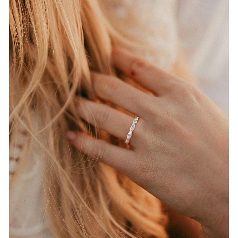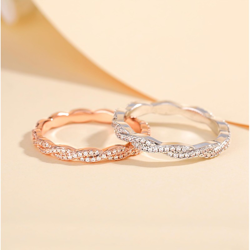• Exquisite Design: This twisted stacking ring is inlaid with much cubic zirconia, which will make your eyes shine, comfort fit design, retain the perfectly shape