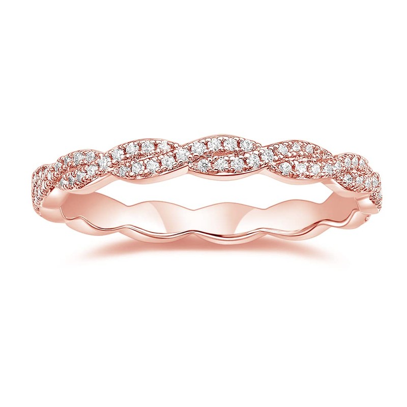 TIGRADE Engagement Ring Cubic Zirconia Twisted Ribbons of Pave-Set Eternity Wedding Band for Women Size 4-12 (Rose Gold, 6)