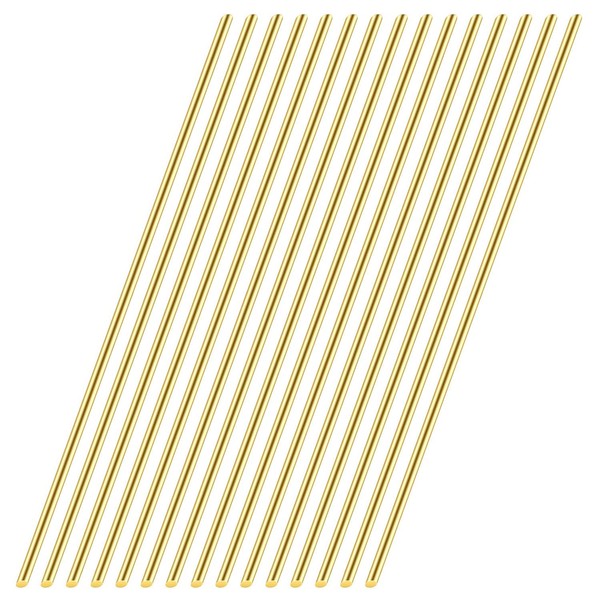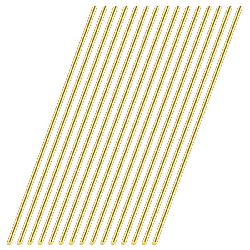 TIHONORI 15 Pcs 3/25" x 12" Brass Rods, Brass Solid Round Rod Lathe Bar Stock, 3mm x 300mm Knife Handle Pins - Knife Pins - Brass Pins for Hardware DIY Craft Making