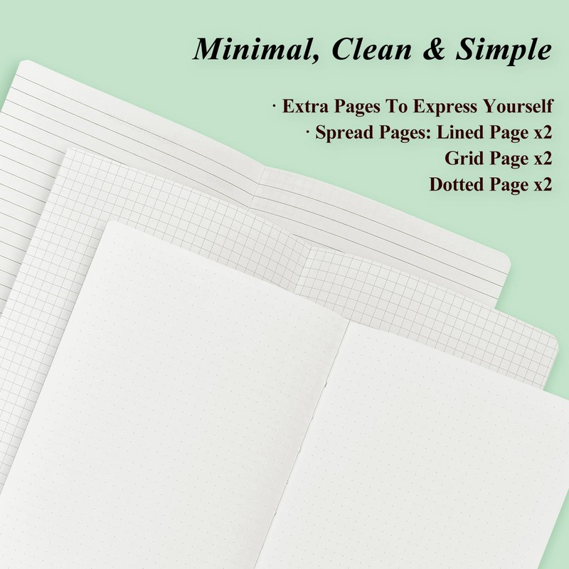 - Weekly Calendar: Each week has a flat lay spreadsheet of daily time slot and dotted paper. Two pages per week design provides plenty of space for note taking and express yourself. Good for free mind to manage a whole week ahead and set priorities without rigid restriction