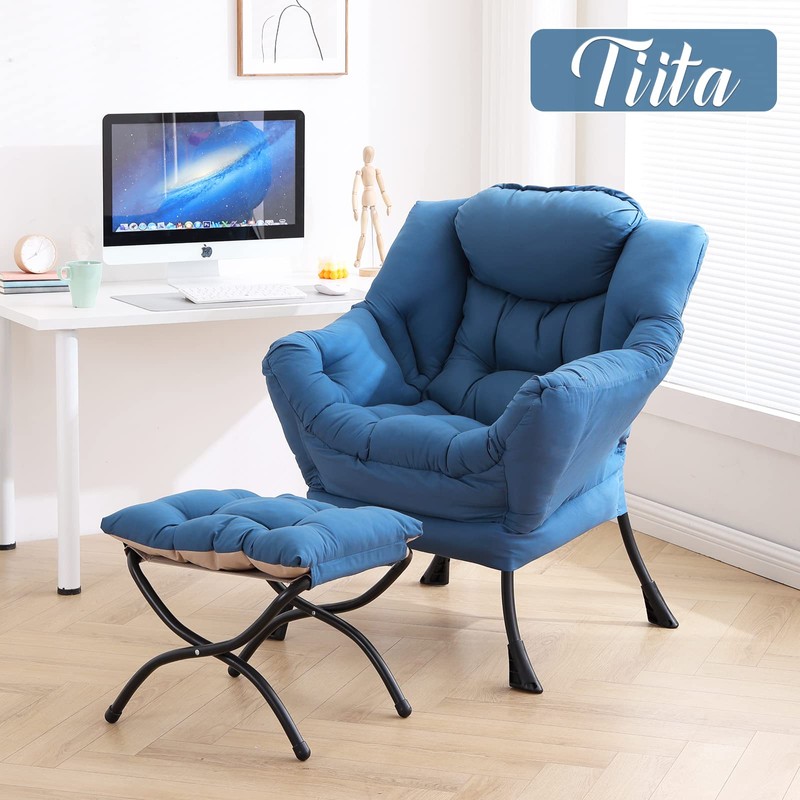 Tiita Lazy Chair with Ottoman, Modern Large Accent Lounge Chair, Leisure Sofa Armchair/Reading Chair with Footrest for Bedroom, Living Room, Dorm Rooms, Garden and Courtyard