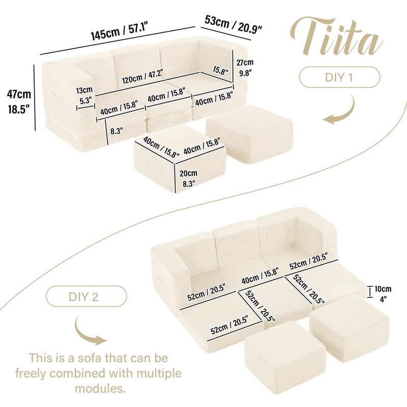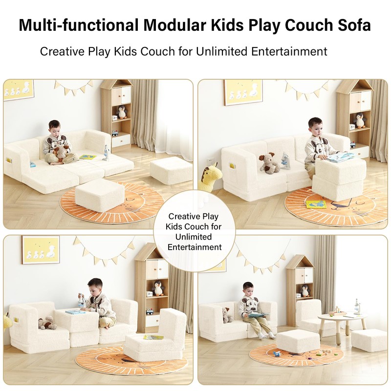 - Promotes Creativity: Encourage teamwork and creative thinking with the modular design of this play couch. Kids can build fun structures, enhancing their problem-solving and social skills while enjoying hours of imaginative play in the living room, bedroom, or playroom