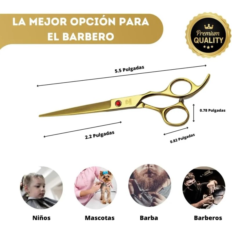 - **Precisión y Control**: Gracias a su diseño ergonómico y su acción suave, nuestras tijeras doradas te permiten realizar cortes precisos y definidos con facilidad, garantizando resultados impecables en cada servicio.