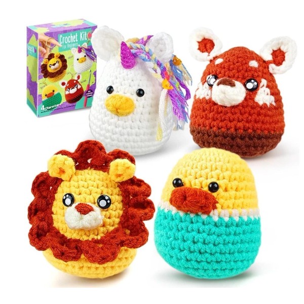 TIKA 4-Pack Beginner Crochet Animal Kit – DIY Craft Set with Video Tutorials Gift