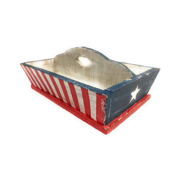 Here is a very charming divider tray with 2 compartments, blue, red and white rustic color. Each piece has been hand carved and hand painted with great attention to details.