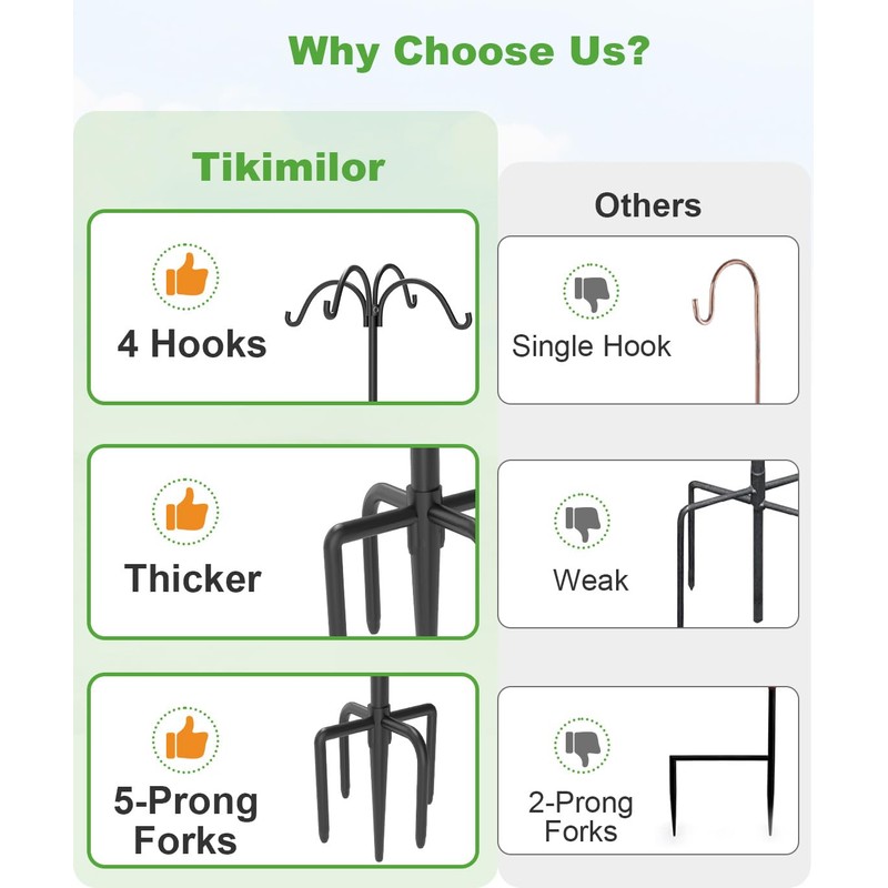 Tikimilor 4-Hooks Shepherds Hooks for Outdoor, 92" Heavy Duty Bird Feeder Pol...
