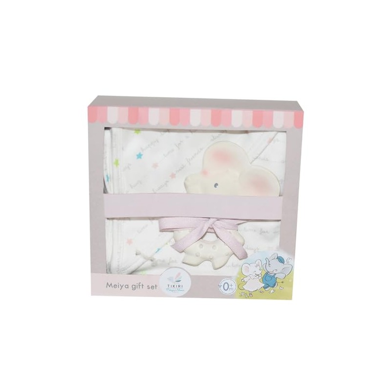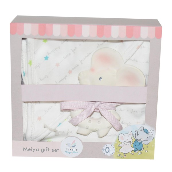 - The Meiya gift set with soft cuddly blanket in beautiful colour and a natural rubber baby teething ring (motif: mouse) is a wonderful birth gift for little boys and girls