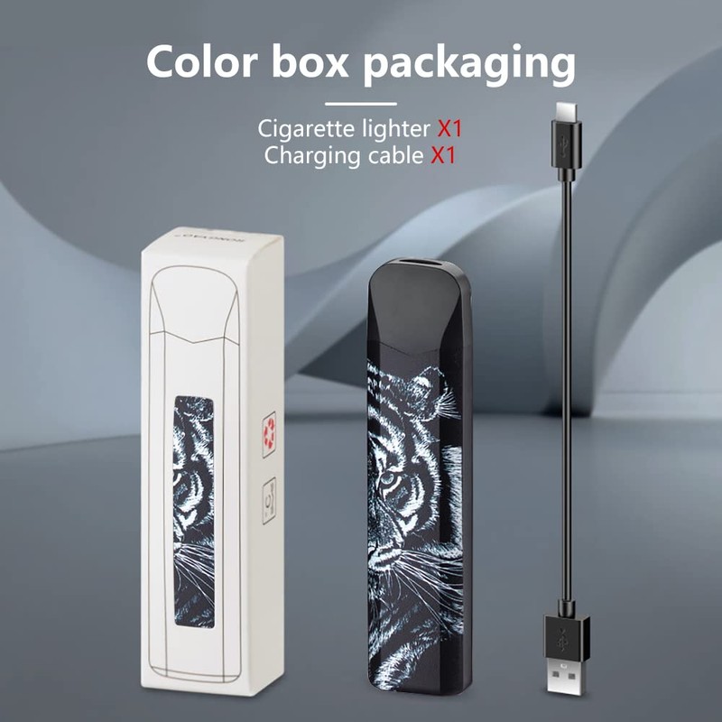 TIKIUKI Mini Lighter, Ultra-Thin Windproof Electric Lighter Double-Sided Tungsten Lighter Upgraded Touch Switch Lighter Rechargeable USB Lighter with LED Battery Indicator (Tiger)