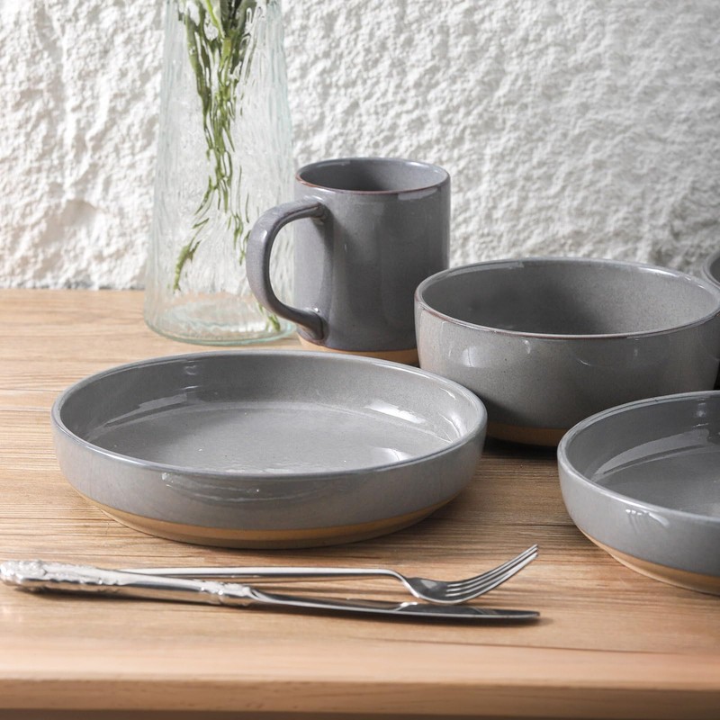 Tikooere Pasta Bowls 26 OZ,Ceramic Salad Serving Bowls Set of 4,Large 8.2 inch Shallow Bowls Plates for Soup,Fruit,Noodle,Dinner,Dishwasher & Microwave Safe,Gray